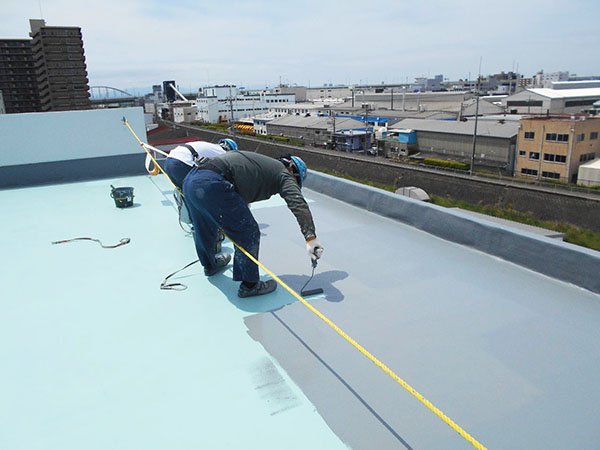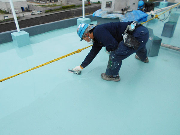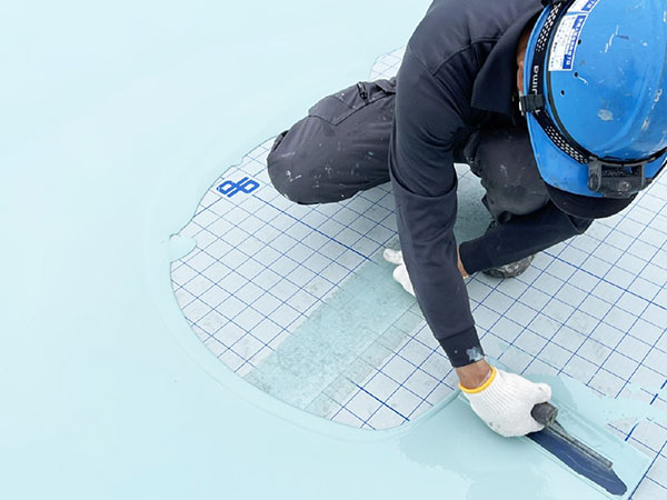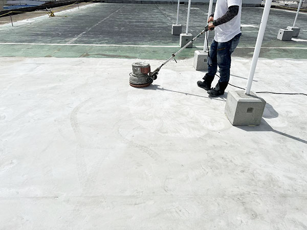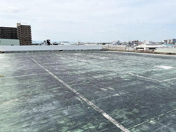 場所:大阪府東大阪市用途:屋上 竣工:2022年5 月 工期:1ヶ月 面積:816㎡ 工法:シート+ ウレタン複合工法