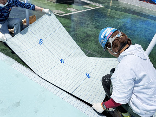 ■下地を選ばず自由度の高い防水施工が可能 ■高い強度と柔軟性を持つ絶縁脱気シートが水分を逃し、動きを吸収 することで塗膜の膨れや破断を防ぐ ■シート単体でも防水性能を保有しているので、万が一塗膜の破損が 生じても漏水に至らない
