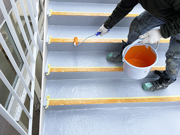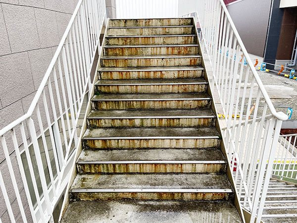 場所:石川県加賀市用途:外部階段竣工:2024年3 月 工期:3日間 面積:37.9㎡ 工法:ウレタン密着塗膜防水工法