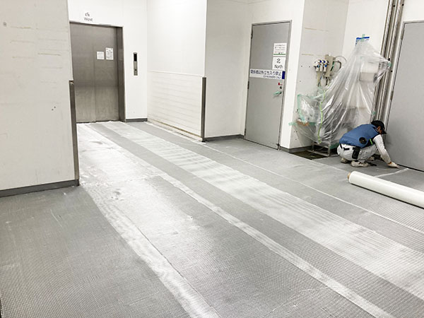 場所:兵庫県神戸市用途:荷受室竣工:2022年6月 工期:1日間面積:48㎡ 工法:低臭MMA樹脂+FRP特殊工法